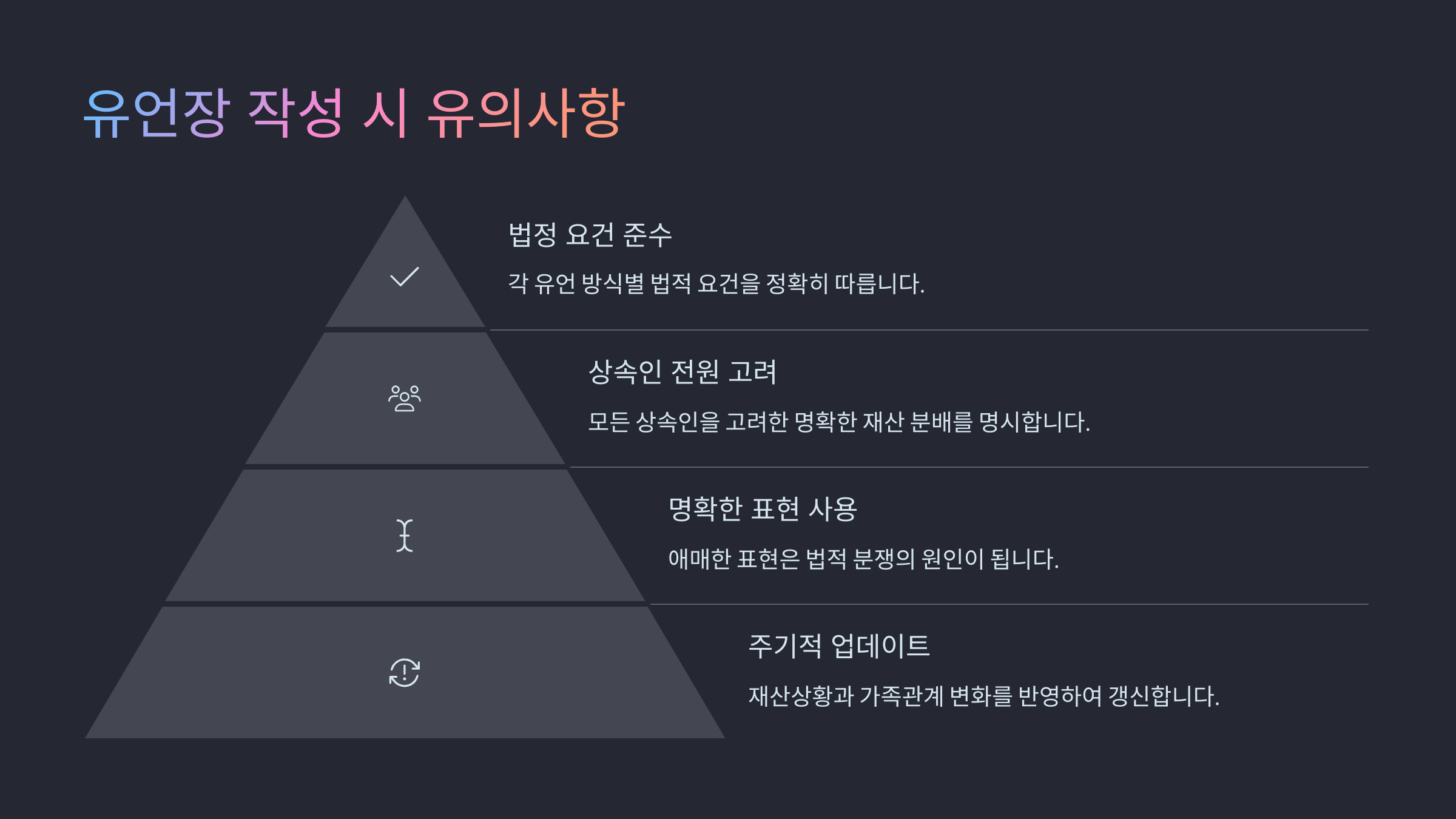 | 이해관계자 배제 | 증인이나 작성자는 상속인이 아니어야 함 | ★★★★☆ |