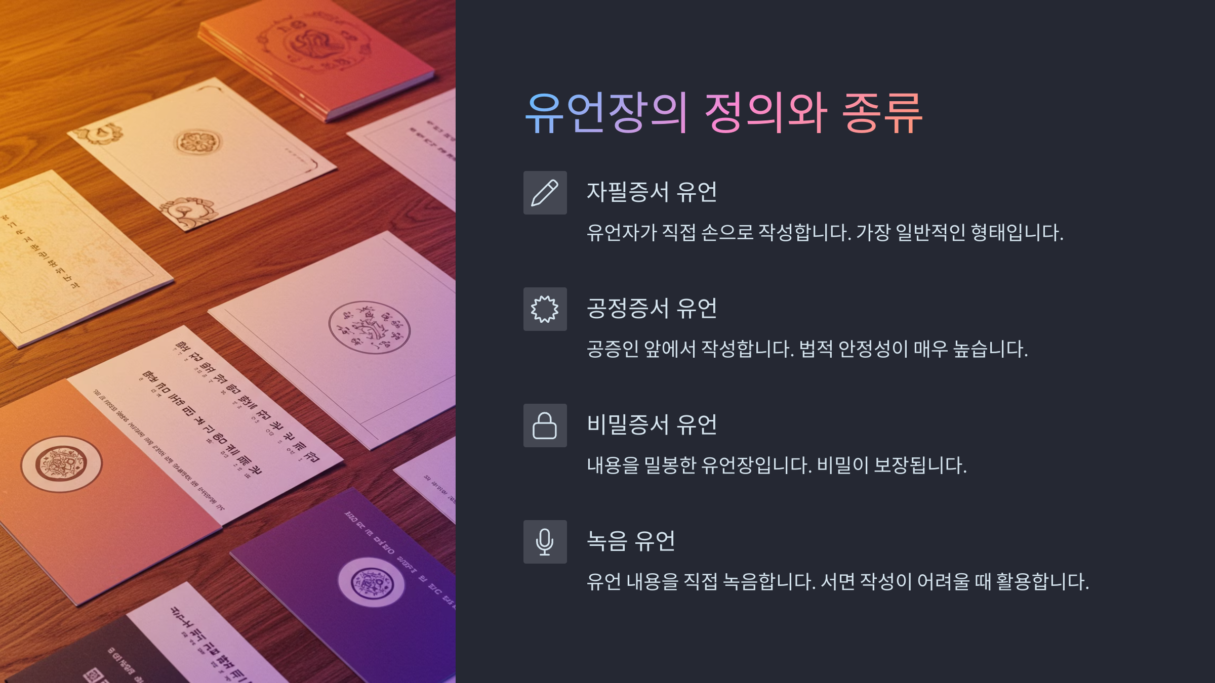 📘 유언장 종류별 특징 비교